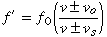 The perceived frequency (f ´) is related to the actual frequency (f0) and the relative speeds of the source (vs), observer (vo), and the speed (v) of waves in the medium by