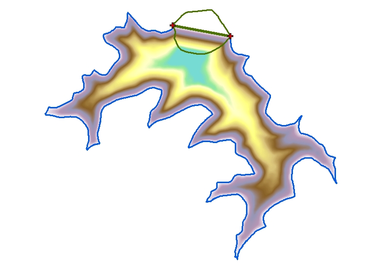 Next, it was necessary to create a shapefile for the boundary of the reservoir area. For this, the contour line for 810 feet was traced.